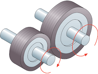 Este mecanistmo de transmisión circular consiste en dos o más ruedas que se tocan entre sí montadas sobre ejes paralelos, de modo que, mediante la fuerza que produce el rozamiento entre ambas, es posible transmitir el movimiento giratorio entre los ejes, modificando, no sólo las características de velocidad, sino también el sentido de giro.